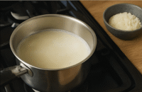 - V hrnci zahřejte mléko a olej. Měla jsem čekat na první bublinky, ale samozřejmě jsem mezitím začala scrollovat Instagram a téměř vše překypělo. Takže POZOR na to!